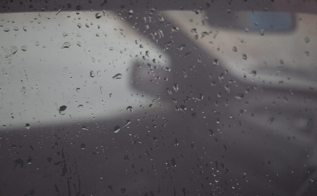 This photo of rain on a car window was taken as I stood chatting to a surfer in the freezing Scottish wind last year. He was getting ready to head down to the shore, as my kids played in the mud by the car. Just to set the scene, there was a little frenzy of surfers arriving, getting ready and scurrying down to the shore with their boards. As I chatted to this long boarder about Scottish surf culture, I noticed rain drops on the window of his old Peugeot car and looked a little closer.